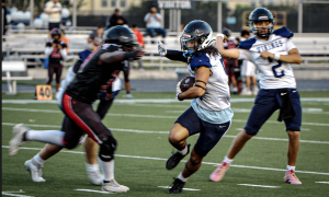 The field lights reflected through the sky as the crowd reacted to every move. Students stomp on the bleachers, parents wave signs in the air; the energy was electric. Sweat, cheers, and pride were all under those Friday night lights. On Sept. 19, 2025, The Village School’s football team faced off against Harmony Katy winning 29-0.