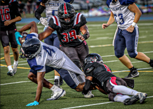 The game started off with the Vikings having an immediate lead giving Harmony Katy no room to recover. The high energy and spirit carried throughout the game until half time finally brought the energy to a pause giving fans a chance to finally grab some food from any of the three food trucks lined up along the field. The Viking Elite Spirit team performed their flawless high-energy dance routine keeping the fans entertained. Afterwards, the band also played music adding to the crowd’s awe. Halftime also allowed for younger siblings to enjoy other entertainment available such as inflatables and face painting.